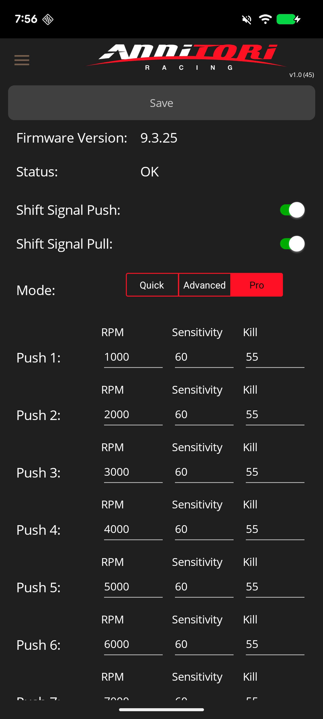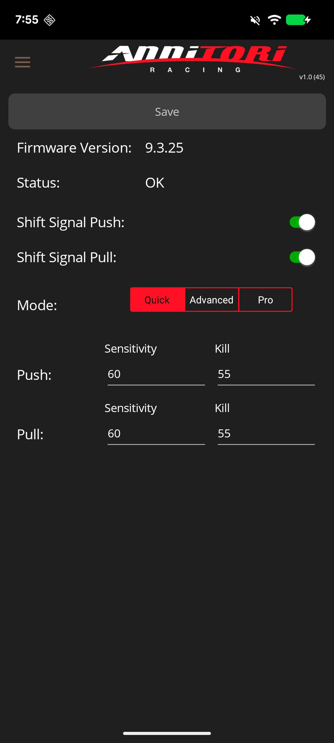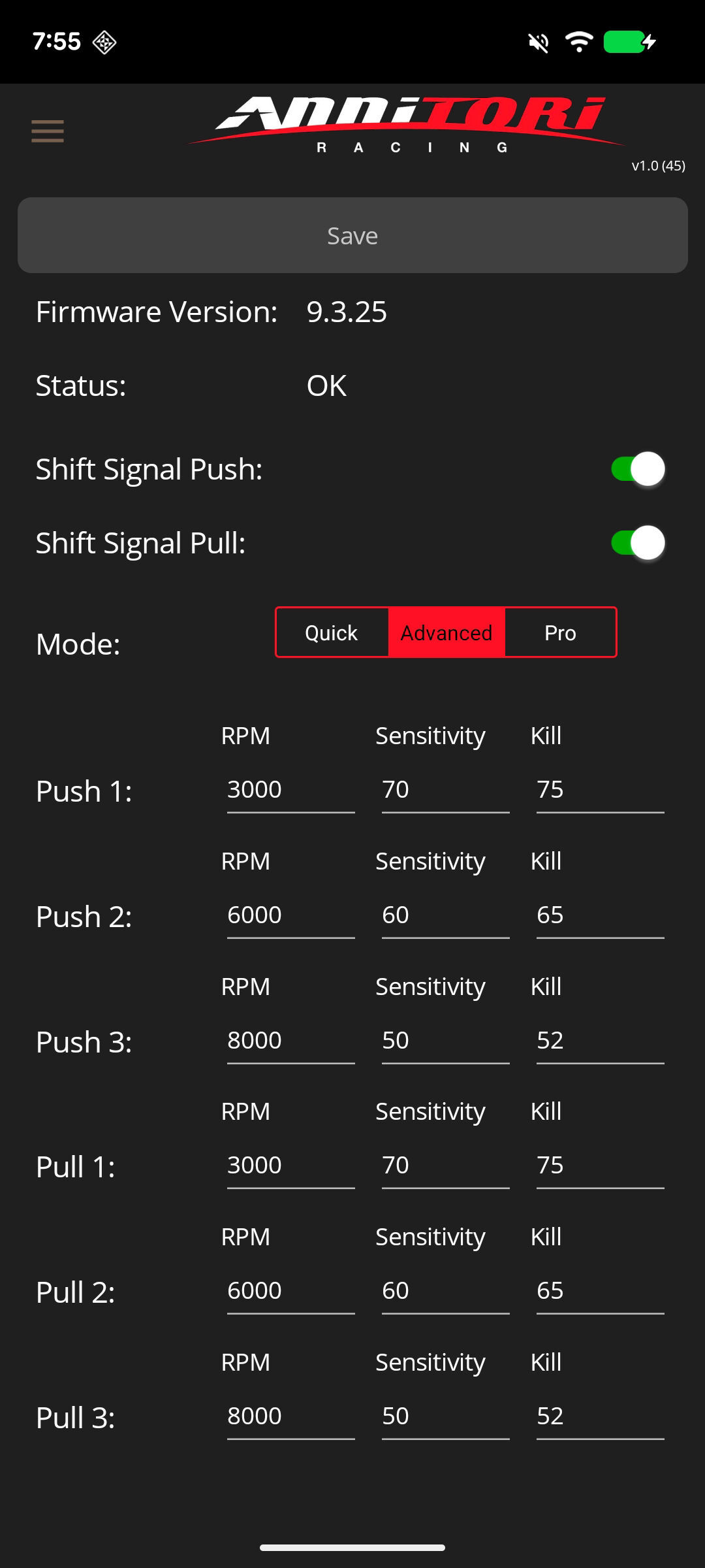 ADVANCED mode allows you to setup your QS PRO Sensitivity and Kill TIme at any THREE distinct rpms (if you don't like ours, choose your own!) and our Annitori algorithms will "fill in" the values between your choices for the smoothest - and easiest - quickshifter setup ever across your entire rpm range!